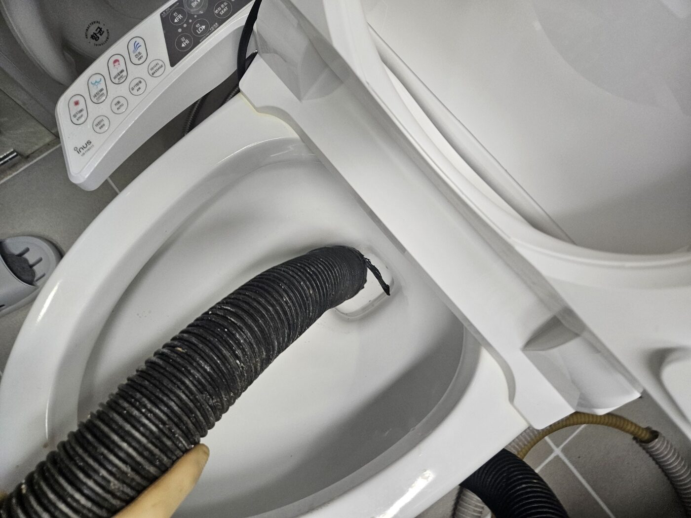 현장에 도착한 뒤 먼저 거주자분께 증상이 시작된 시점과 당시 사용 상황을 자세히 들었습니다. 처음에는 물이 내려가긴 했지만 속도가 확연히 느려졌고, 어느 순간부터는 물을 내리면 수위가 올라와 불안해서 사용을 멈추셨다고 하셨습니다. 중간에 여러 번 임시로 해결을 시도했지만 개선되지 않았고, 시간이 갈수록 더 막히는 느낌이 있어 점검을 요청하신 상황이었습니다. 이런 경우는 추가 사용이 오히려 상태를 악화시킬 수 있어, 현장에서는 구조 확인 후 바로 작업을 진행했습니다.