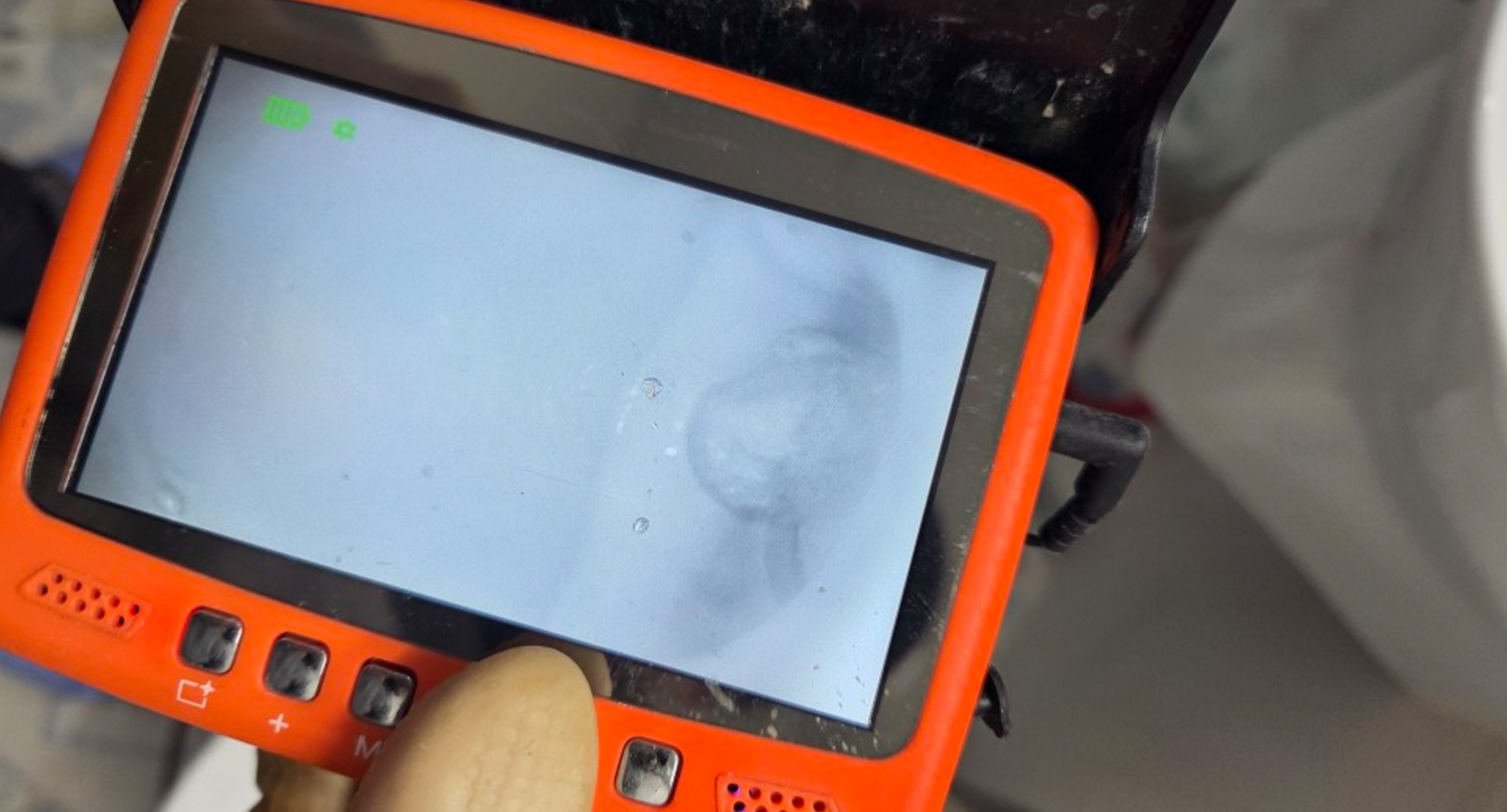 전체 상태를 점검하면서 연결된 라인을 확인했습니다. 특정 구간에서 흐름이 완전히 차단된 상태였으며, 내부 중간보다 깊은 위치에서 강한 저항이 발생하고 있었습니다. 배관탐지 장비를 활용해 정확한 위치와 범위를 확인했고, 압축된 이물질이 일정 구간에 걸쳐 형성된 상태임을 확인했습니다.