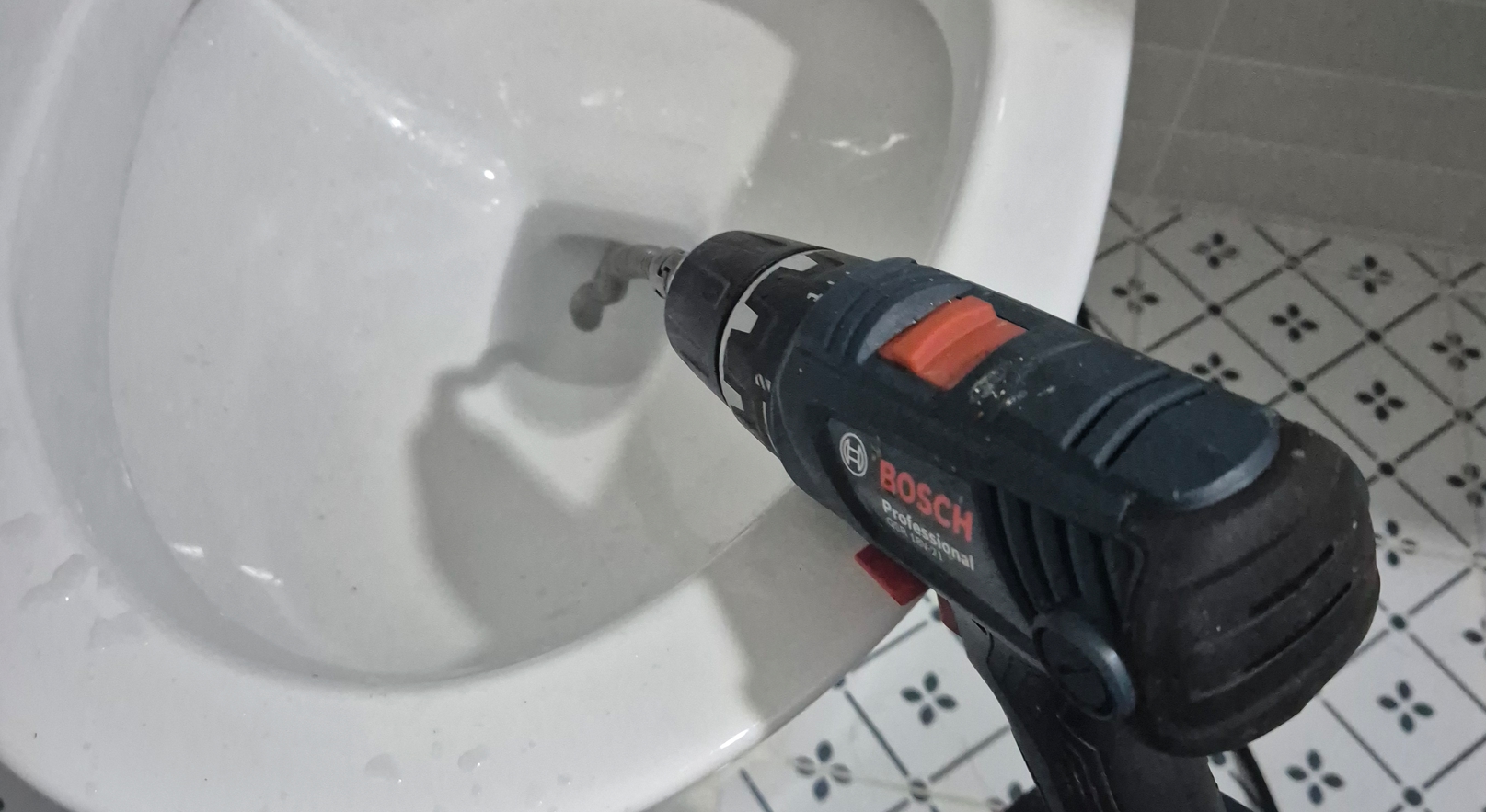 성북구변기뚫는업체 변기에음식물쓰레기 막혔을때 뚫는방법 초기 단계로 스프링관통기를 투입해 내부 통로를 확보하는 작업을 진행했습니다. 장비를 일정한 속도로 밀어 넣으며 회전시켜 덩어리를 관통하는 방식으로 접근했고, 강한 저항이 느껴지는 구간을 중심으로 반복 작업을 진행했습니다. 일부 흐름이 열리면서 고여 있던 물이 서서히 빠지기 시작했지만, 완전한 제거는 이루어지지 않은 상태였습니다.