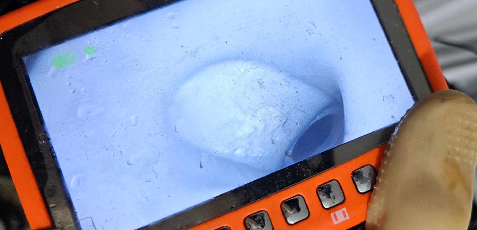 전체 상태를 점검하면서 다른 라인까지 영향을 주고 있는지 확인했습니다. 세면대와 바닥 라인은 정상적으로 작동하고 있었으며, 특정 구간에서만 흐름이 완전히 차단된 상태였습니다. 내부 중간 구간에서 걸려 있는 것으로 판단되어 배관탐지 장비를 활용해 정확한 위치와 깊이를 확인했고, 이를 기준으로 작업 방향과 순서를 설정했습니다.