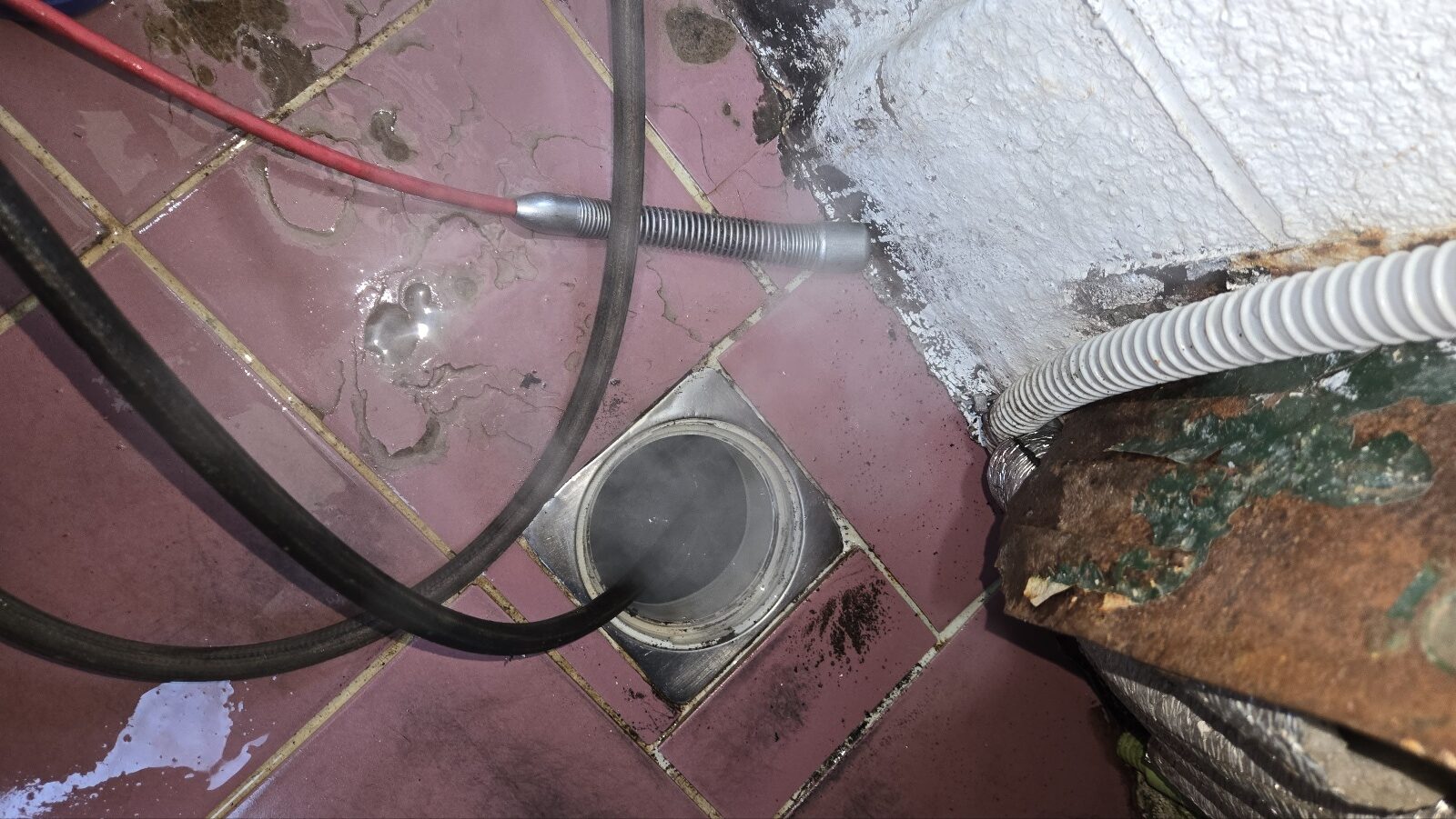 현장에 도착한 뒤 먼저 거주자분께 증상이 언제부터 시작되었는지, 어떤 상황에서 불편이 가장 크게 느껴졌는지 자세히 들었습니다. 청소나 세탁 후 물을 사용하면 바닥 쪽으로 물이 고이고, 시간이 지나면 내려가긴 하지만 다음 사용 때 다시 반복된다고 하셨습니다. 특히 장마철이나 물 사용량이 늘어나는 시기에는 증상이 더 크게 나타난다고 하셔서 내부 흐름 저하 가능성을 염두에 두고 점검을 진행했습니다. 외관상 바닥 마감이나 배수구 주변에 파손 흔적은 확인되지 않았습니다. 다만 물을 흘려보내는 테스트를 진행하자 초반에는 내려가는 듯 보이다가 중간에서 흐름이 둔해지며 물이 머무는 반응이 확인되었습니다. 물 사용량이 늘어날수록 처리 속도가 더 떨어지는 모습으로 보아 내부 통로가 좁아진 상태로 판단했습니다.