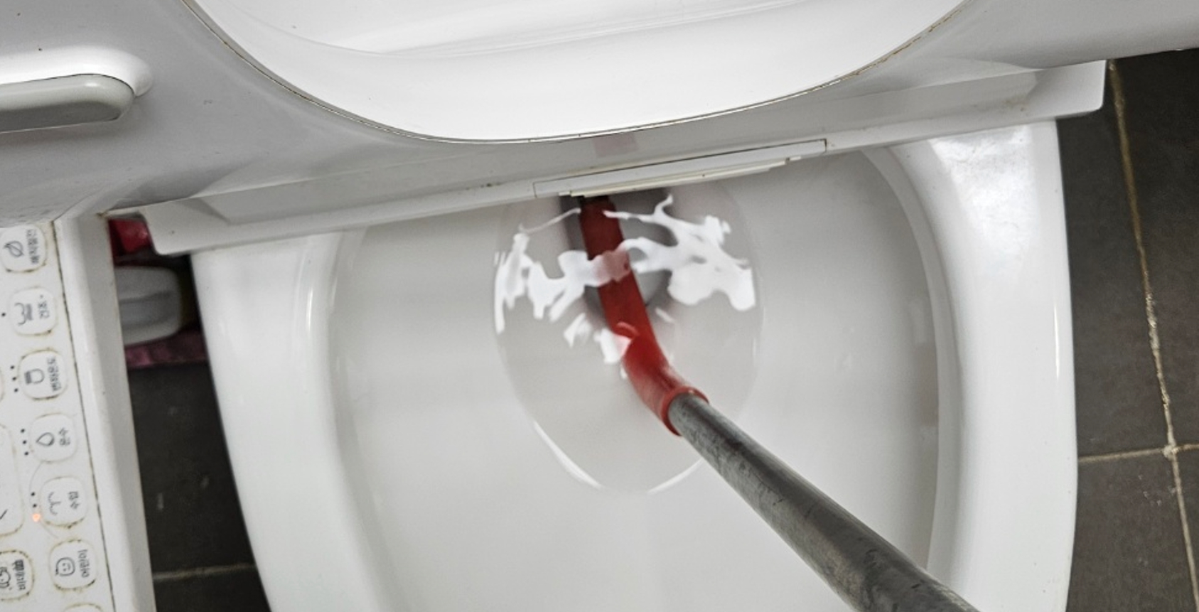 인천변기뚫는업체 변기에 휴지심빠졌을때 꺼내는법 초기 대응으로 관통 장비를 사용해 내부에 걸려 있던 이물을 흔들어주는 작업을 진행했습니다. 이 단계에서는 무리하게 밀어 넣기보다는, 저항을 확인하며 조금씩 위치를 조정하는 방식으로 접근했습니다. 일부 고여 있던 물의 움직임이 바뀌며 내부에 변화가 생긴 것이 확인됐지만, 완전한 해결까지는 추가 작업이 필요했습니다.
