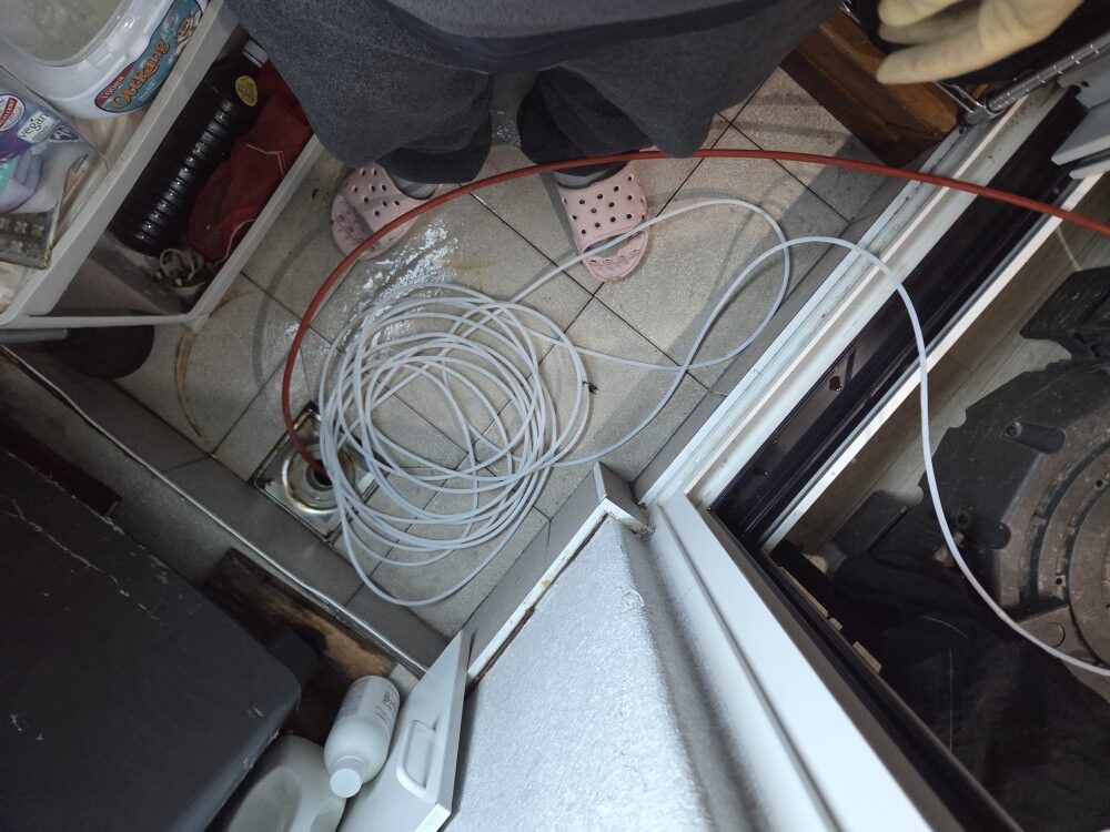 현장에 도착한 뒤 거주자분께 증상이 발생하는 시점과 사용 패턴을 자세히 들었습니다. 세탁을 시작하면 배수 과정에서 물이 한 번에 처리되지 않고 바닥 쪽으로 퍼지는 현상이 나타났으며, 사용을 멈추고 기다리면 어느 정도 내려가지만 재사용 시 다시 반복된다고 하셨습니다. 특정 가전 사용 시에만 증상이 나타나는 점을 토대로 내부 흐름 이상 가능성을 염두에 두고 점검을 진행했습니다. 외관상 배관 연결부나 바닥 마감에는 큰 손상 흔적이 보이지 않았습니다. 다만 물을 흘려보내는 테스트를 진행하자 초반에는 정상처럼 보이다가 일정 구간에서 흐름이 둔해지며 물이 고이는 반응이 확인되었습니다. 세탁수 특성상 섬유 먼지, 세제 잔여물, 생활 오염물이 함께 섞여 흐르기 때문에 내부 통로가 좁아졌을 가능성이 높다고 판단했습니다.